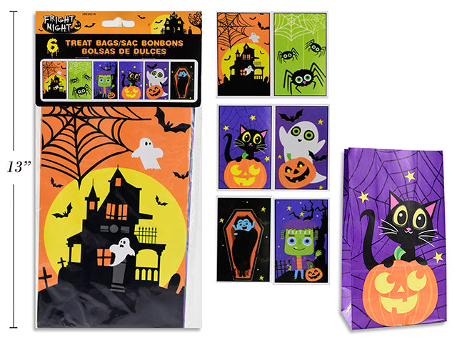 ¡Haz que el truco o trato sea aún más especial con este paquete de 6 bolsas brillantes de 10-3/8" x 6"! Cada pack incluye diseños surtidos, perfectos para empacar golosinas y sorpresas.