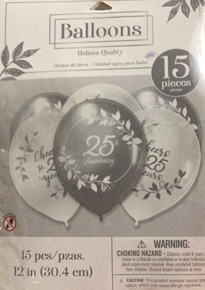 ¡Celebra en grande con los Globos de Látex Happy 25th Anniversary (x15u)! Estos elegantes globos, decorados con el mensaje "Happy 25th Anniversary", son perfectos para conmemorar un cuarto de siglo de amor y compromiso. Cada paquete incluye 15 globos, ideales para añadir un toque festivo y alegre a tu celebración de aniversario. ¡Haz que tu evento sea aún más especial con estos elegantes globos!