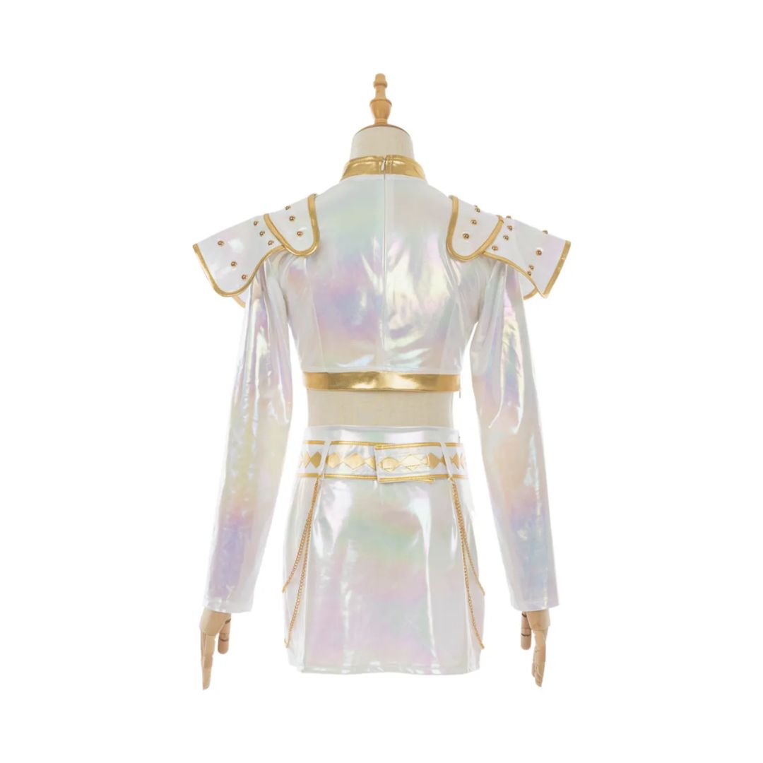 Destaca como un verdadero ídolo con este disfraz de Kpop Demon Hunters en color blanco con diseño de hombros descubiertos. Un look llamativo y moderno, ideal para quienes buscan un estilo único en fiestas o presentaciones.