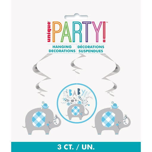 Añade un toque de diversión y color a tu fiesta con estos espirales decorativos de 26" con un tierno elefante azul. Perfectos para colgar en el techo o en cualquier espacio, creando un ambiente festivo y alegre.