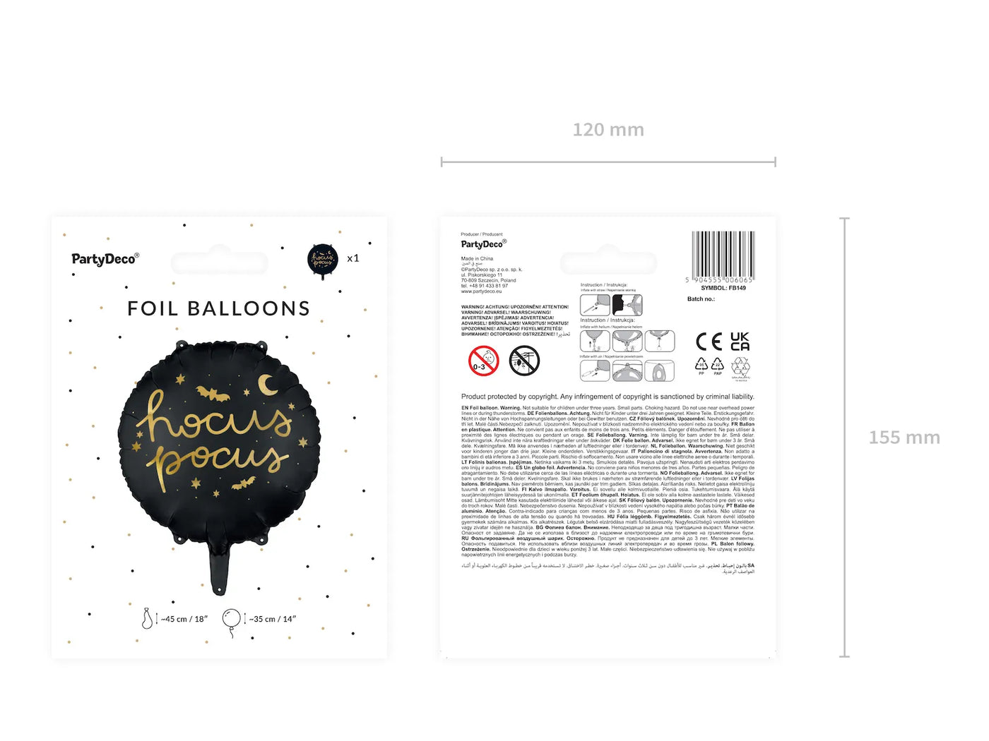 Celebra Halloween con estilo y magia con este globo de foil Hocus Pocus en color negro. Perfecto para darle un toque temático y divertido a tu fiesta.