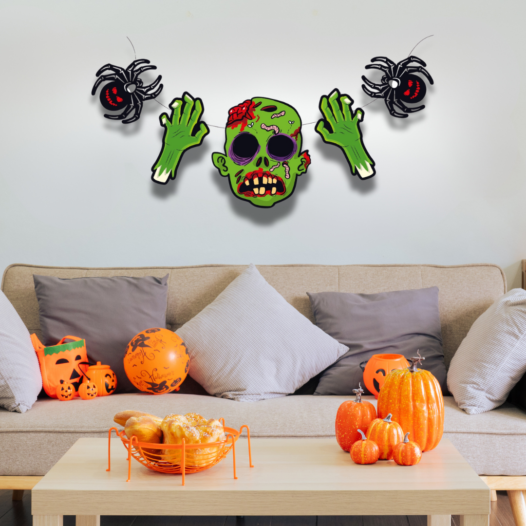 Crea una atmósfera aterradora con este letrero de zombie, perfecto para la temporada de Halloween. Ideal para decorar entradas, paredes o cualquier espacio que necesite un toque espeluznante. ¡Imprescindible para una fiesta de miedo!