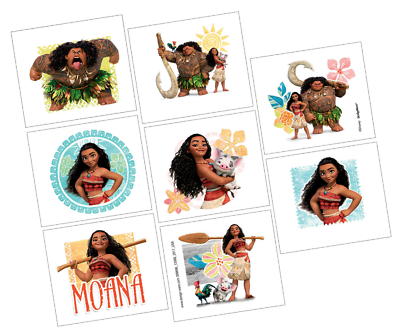 Descripción: Set de tatuajes temporales inspirados en la película Moana. Cada tatuaje presenta símbolos y diseños inspirados en la cultura polinesia, perfectos para darle un toque temático a tu fiesta de Moana.