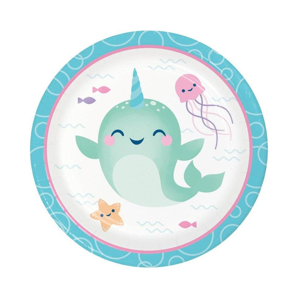 Platos redondos de carton para decorar Narwhal Party 18 Cm (8 unidades)