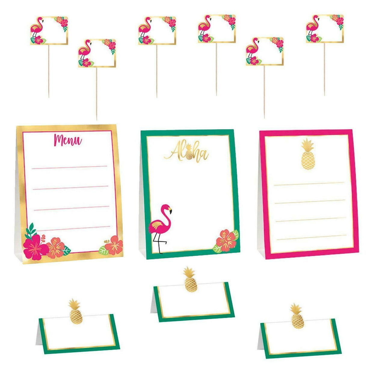 ¡Haz que tu mesa de snacks o dulces se robe todas las miradas! Este set con temática tropical es perfecto para decorar tu buffet con estilo y color.