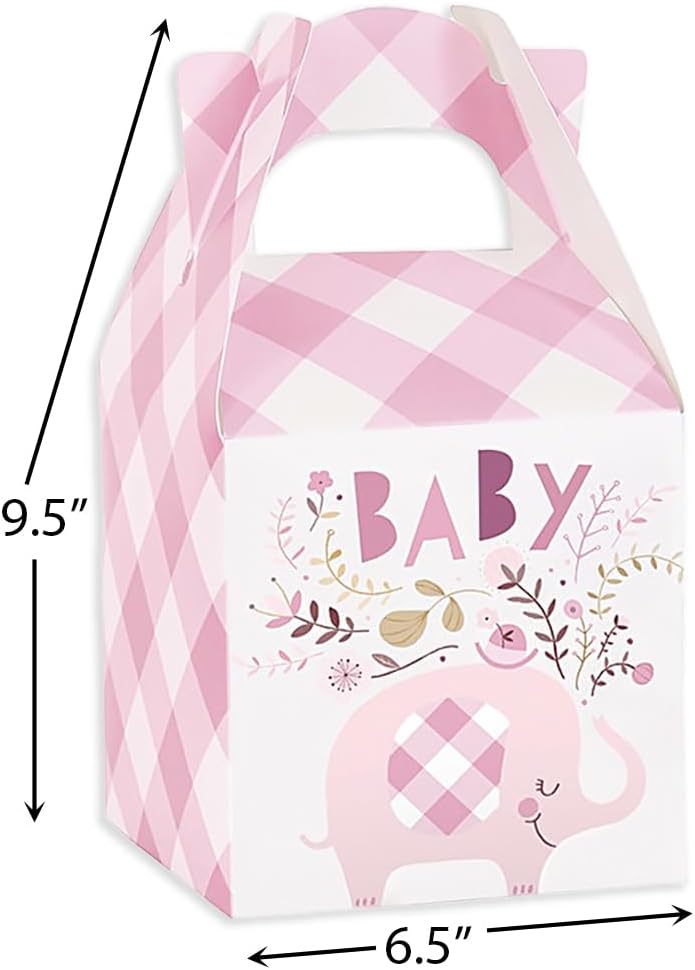 Dale un detalle especial a tus invitados con estas hermosas cajitas de souvenirs con diseño de elefante rosa y delicados detalles florales. Perfectas para baby showers, cumpleaños y celebraciones temáticas.