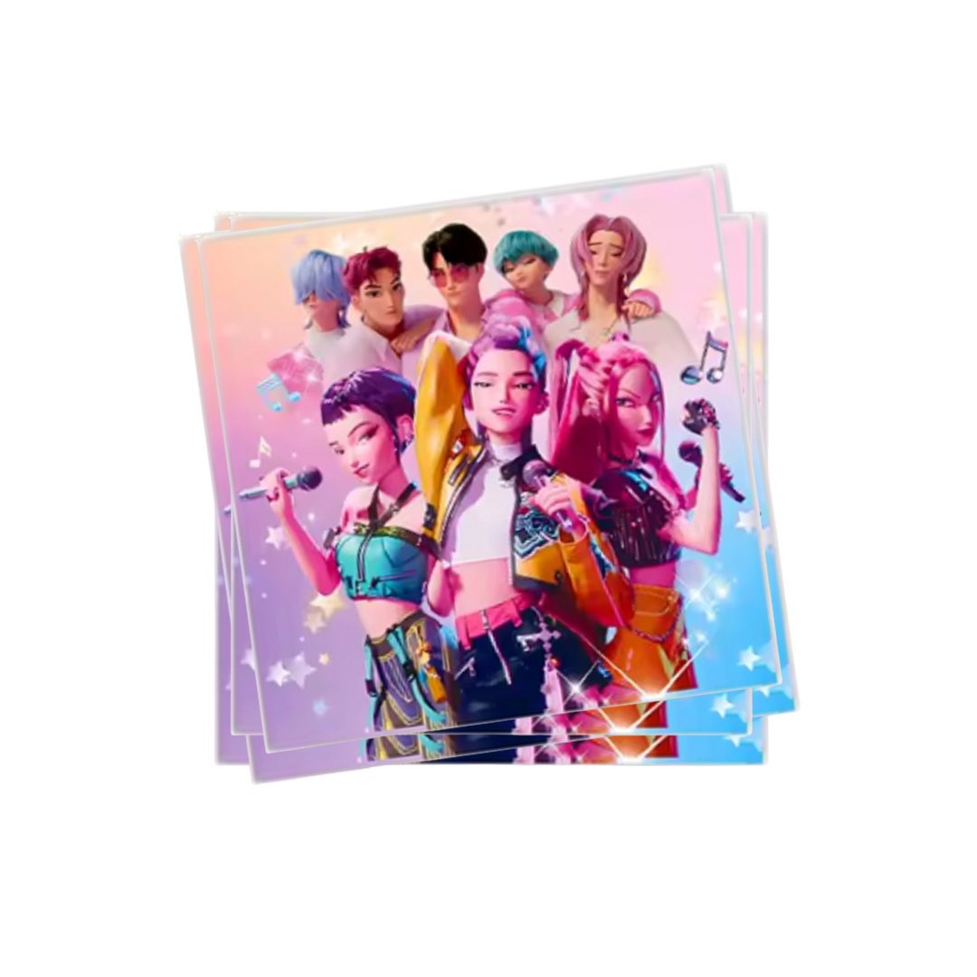 Dale un toque temático y divertido a tu mesa con estas servilletas de Demon Hunters, perfectas para fiestas, cumpleaños o reuniones de fans del Kpop.