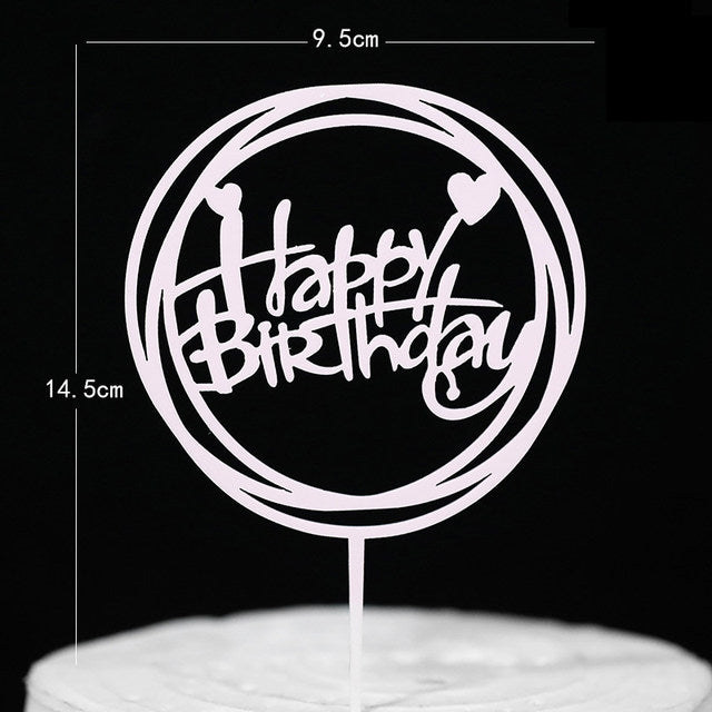 Una caketopper elegante con la frase "Happy Birthday" en color silver, con letras en un estilo cursivo y detalles brillantes para resaltar. Puede incluir adornos como estrellas, coronas o pequeños destellos para darle un toque festivo. Ideal para decorar pasteles de cumpleaños con un toque sofisticado y llamativo.