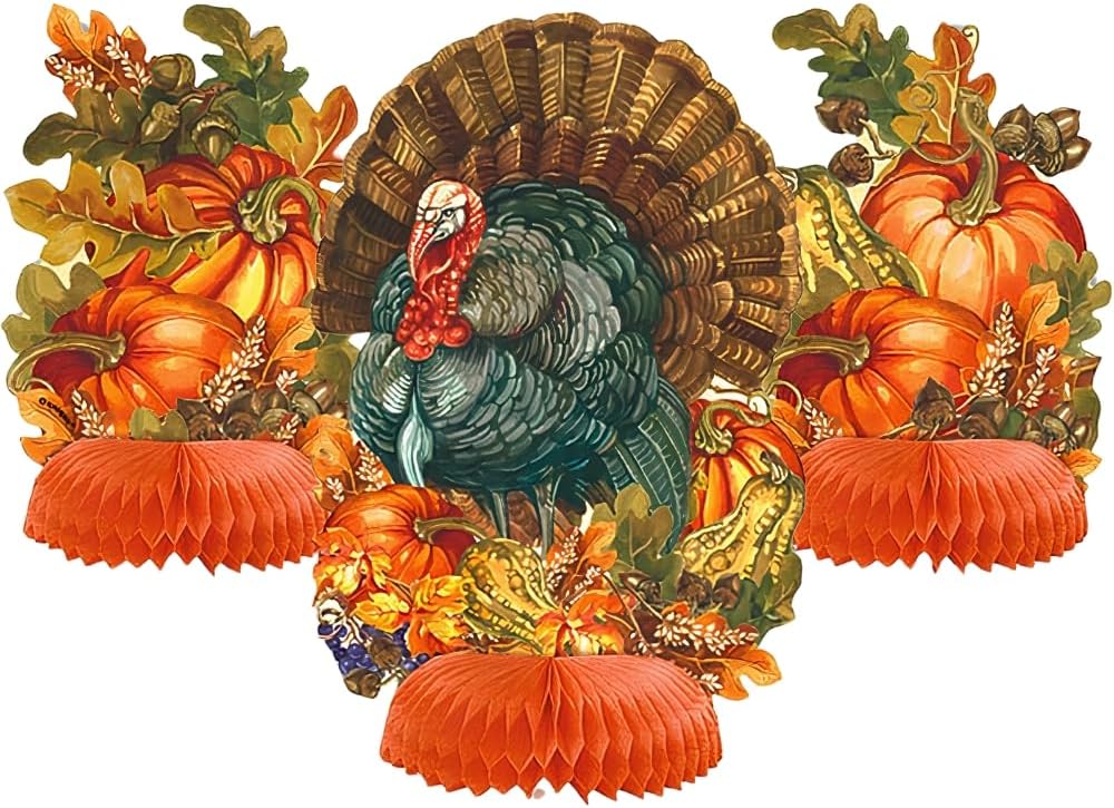 Set de 3 centros de mesa en diseño honeycomb ideales para tu decoración de Thanksgiving.