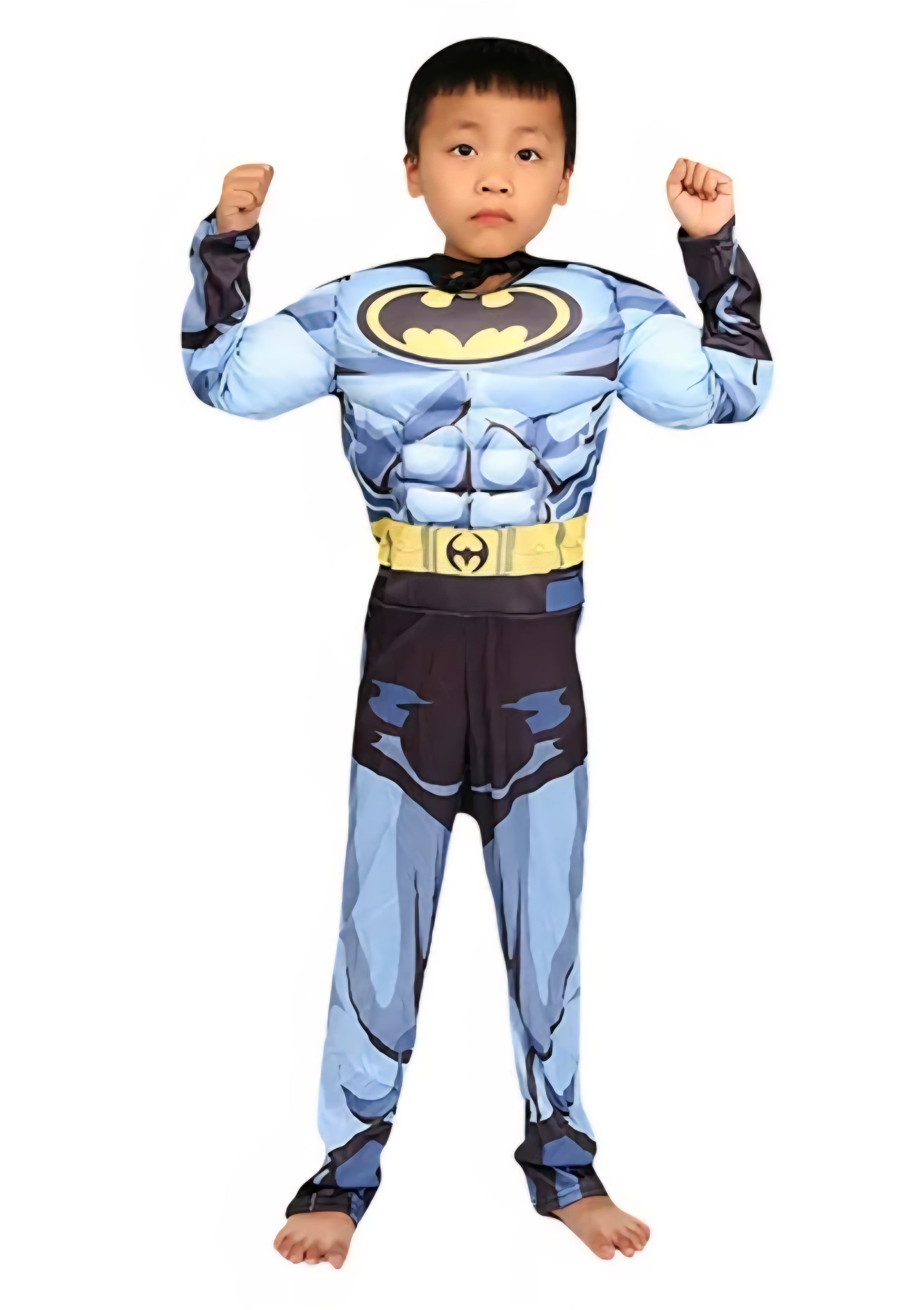 Este disfraz de superhéroe para niños, talla M, es perfecto para pequeños valientes de entre 6 y 8 años. Incluye un traje con diseño de músculos impresos, una capa espectacular y una máscara que oculta su verdadera identidad. Fabricado con materiales suaves y elásticos que permiten jugar, correr y volar con total comodidad.