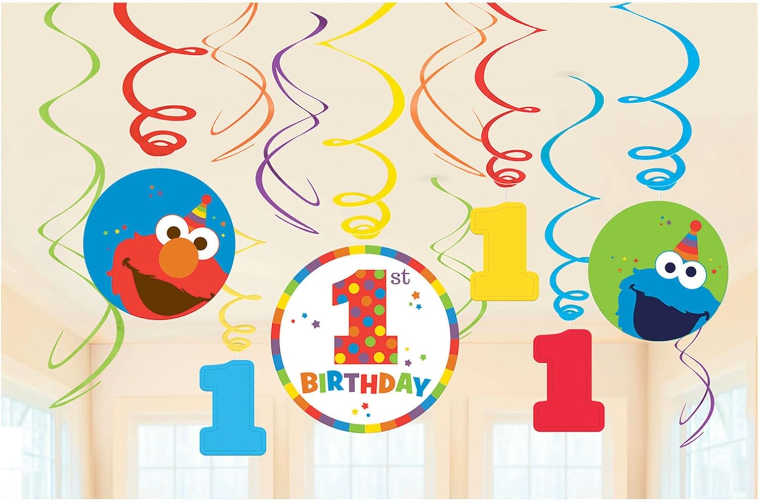 ✨ Incluye 12 espirales colgantes con el diseño de Elmo y personajes de Sesame Street.