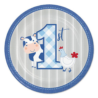 Platos carton pequeños para postre 1° cumpleaños Farm Boy (8 unidades)
