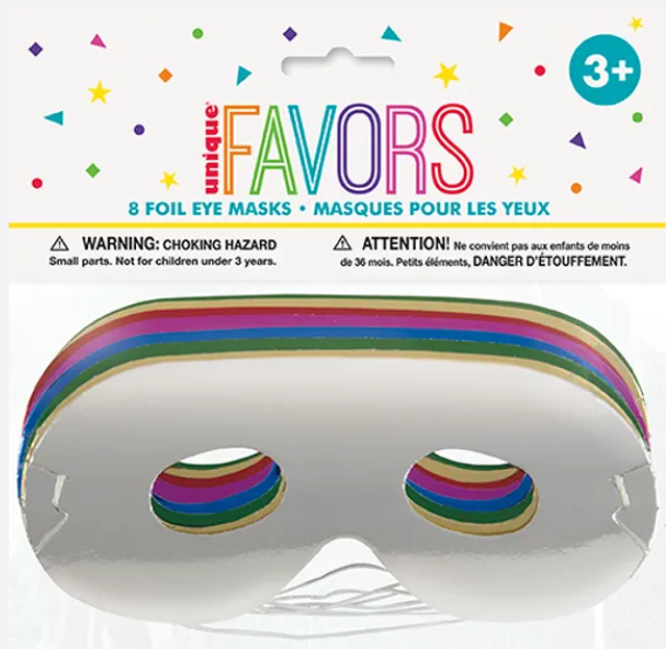 El Foil Eye Mask (x8u) incluye 8 máscaras de ojo de papel metalizado, perfectas para añadir un toque de misterio y glamour a cualquier disfraz o evento.