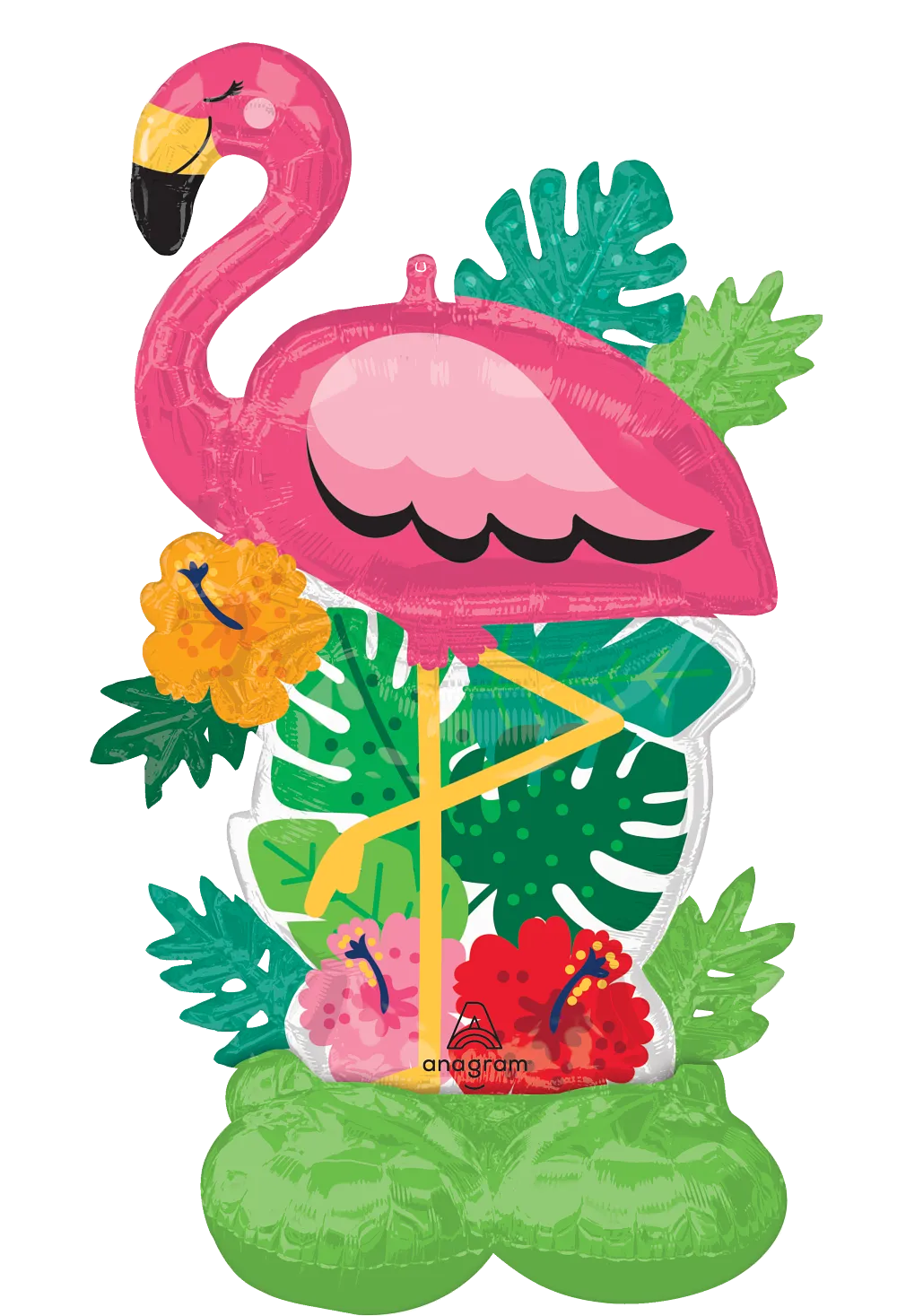 ¡Haz que tu fiesta destaque con este divertido y colorido globo Airloonz “Let’s Flamingle”! Con un flamenco rosa vibrante, hojas tropicales y una base autoportante, es la decoración ideal para pool parties, cumpleaños veraniegos, despedidas de soltera o cualquier celebración con temática tropical.