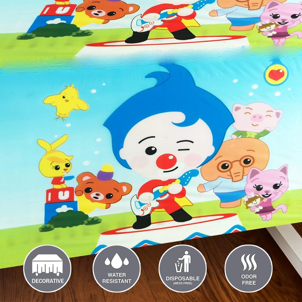 Decora tu mesa con la diversión de Plim Plim. Perfecto para fiestas infantiles, este mantel añade color y alegría a cualquier celebración.