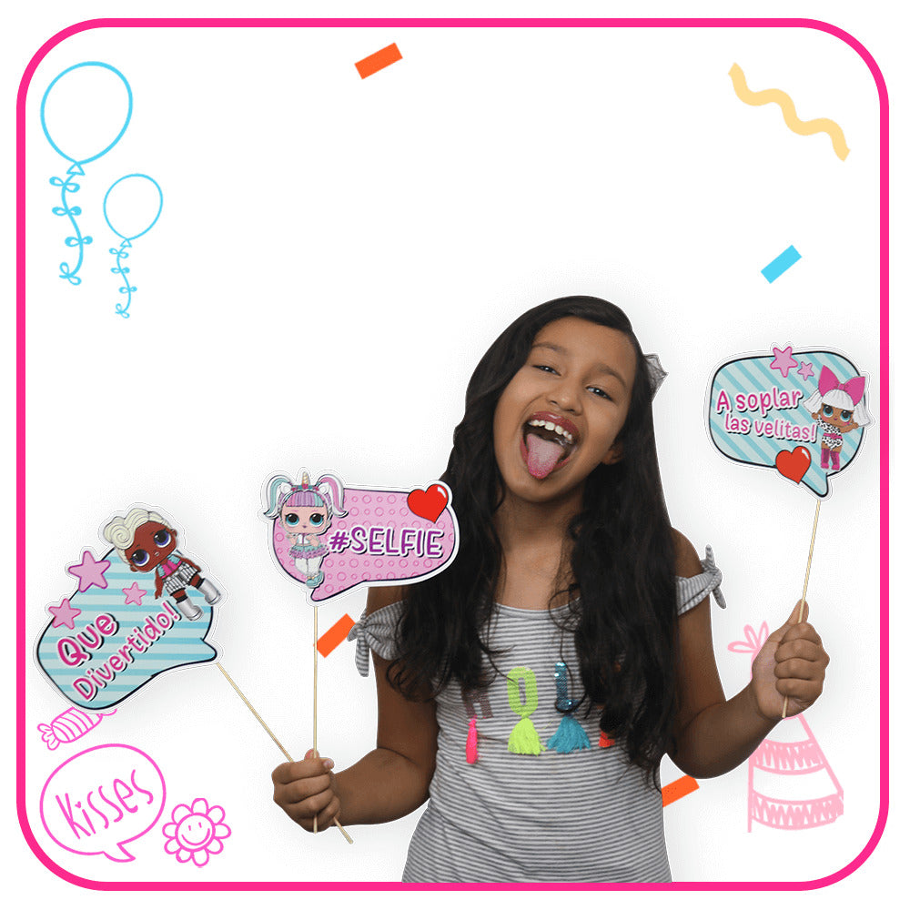 Espectaculares y divertidos Pines para Tomar Fotografías Selfies para fiesta con motivo de L.O.L Surprise ! (6 unidades)