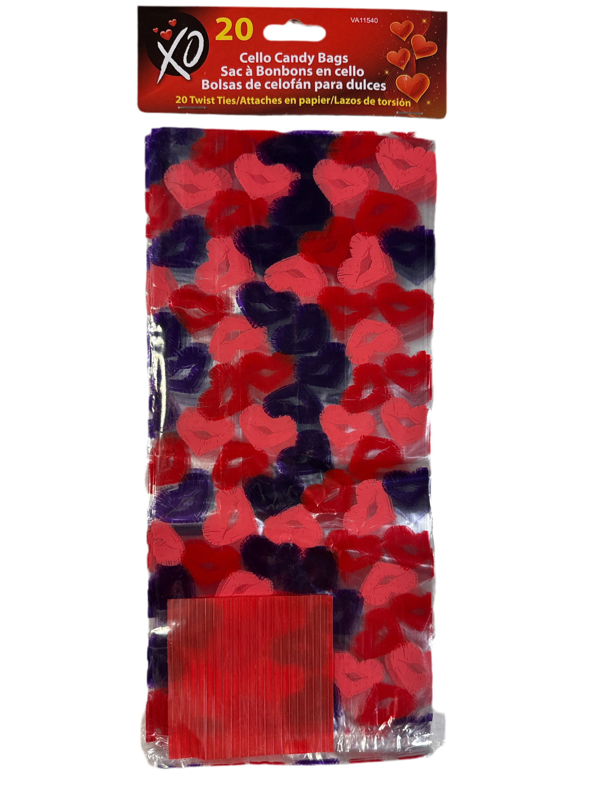 Paquete de 20 Bolsas de Celofán para Dulces de San Valentín - 11 in x 5 in