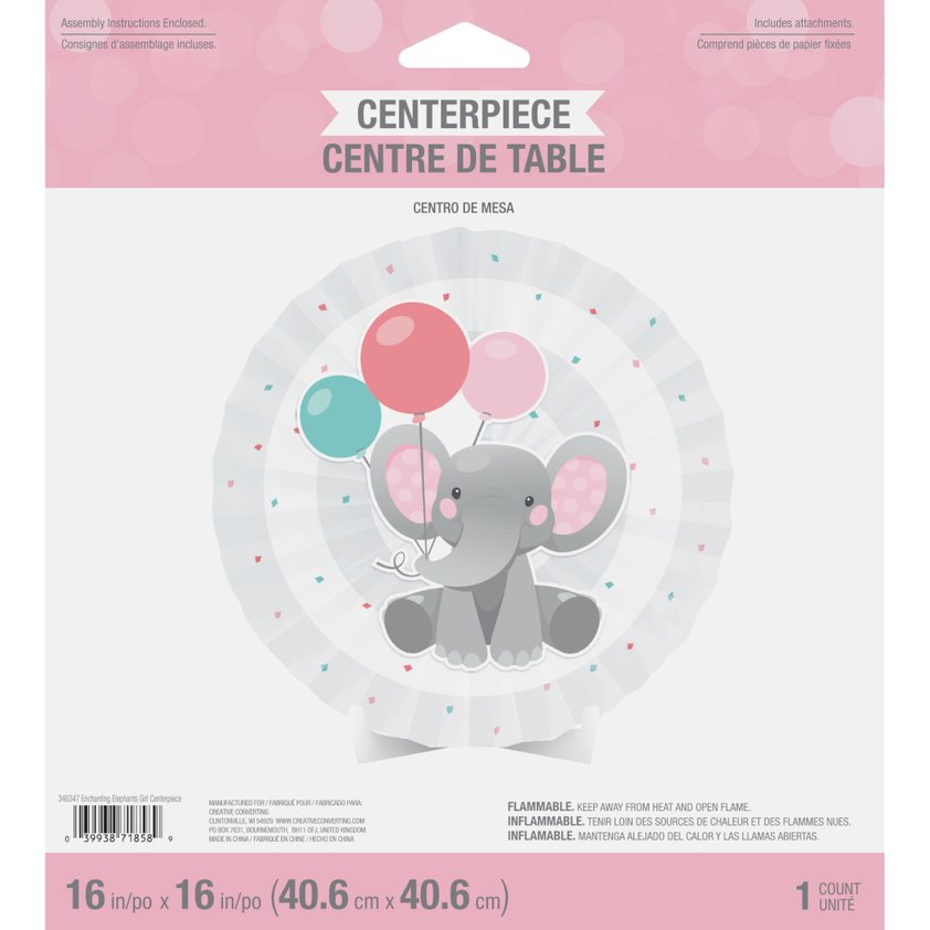¡Destaca tu decoración con el Centro de Mesa Enchant Girl Elephant (x1u)! Este encantador centro de mesa, con un diseño de elefante, es perfecto para baby showers, cumpleaños y otras celebraciones temáticas. Añade un toque adorable y festivo a tu evento, convirtiéndose en el complemento ideal para tu decoración. ¡Haz que tu mesa luzca especial con este dulce centro de mesa!