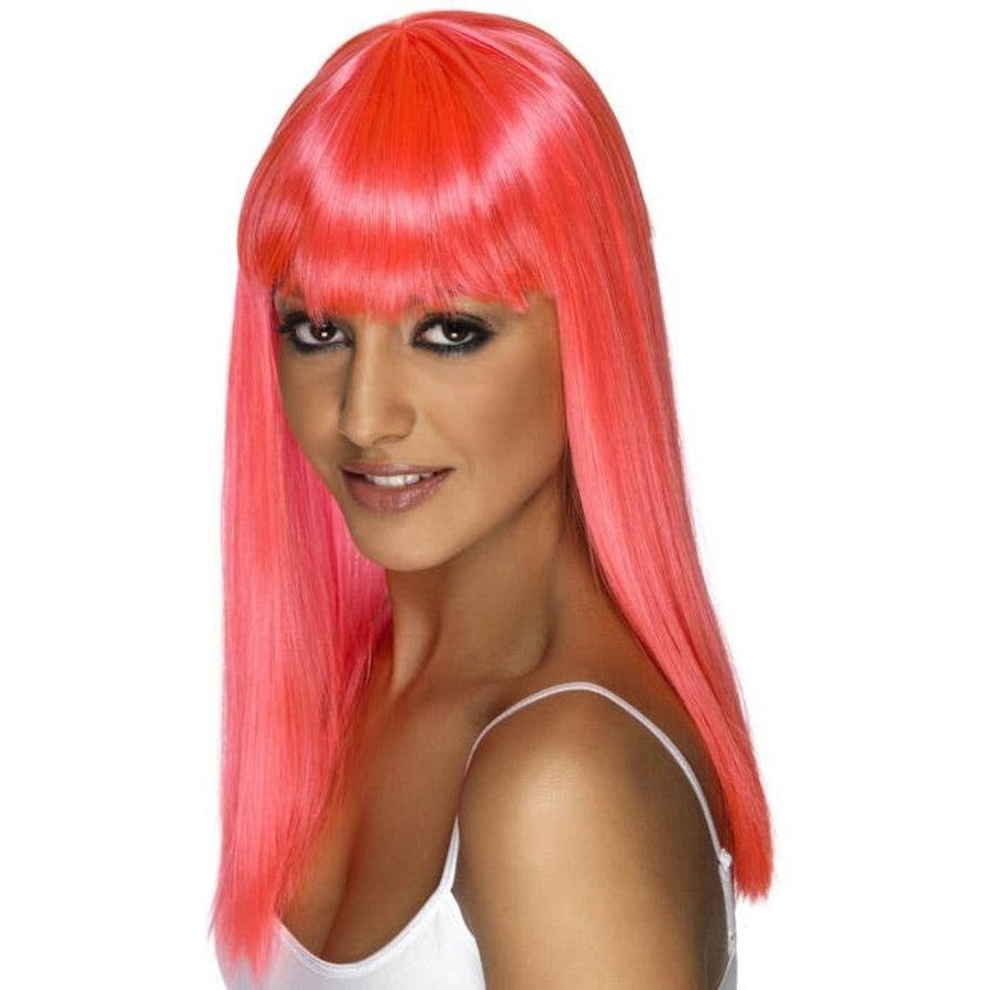 🎀 Glamourama Wig – Neon Pink Long Straight with Fringe 🎀