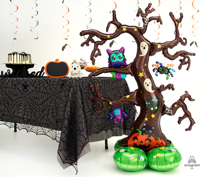 Globo Airloonz “Halloween Tree” de 62” – Impresionante globo de gran tamaño con diseño de árbol espeluznante decorado con calabazas, murciélagos y detalles clásicos de Halloween. Con 62 pulgadas de altura, es ideal como pieza central para fiestas, eventos o decoraciones temáticas. Se infla con aire y no requiere helio.