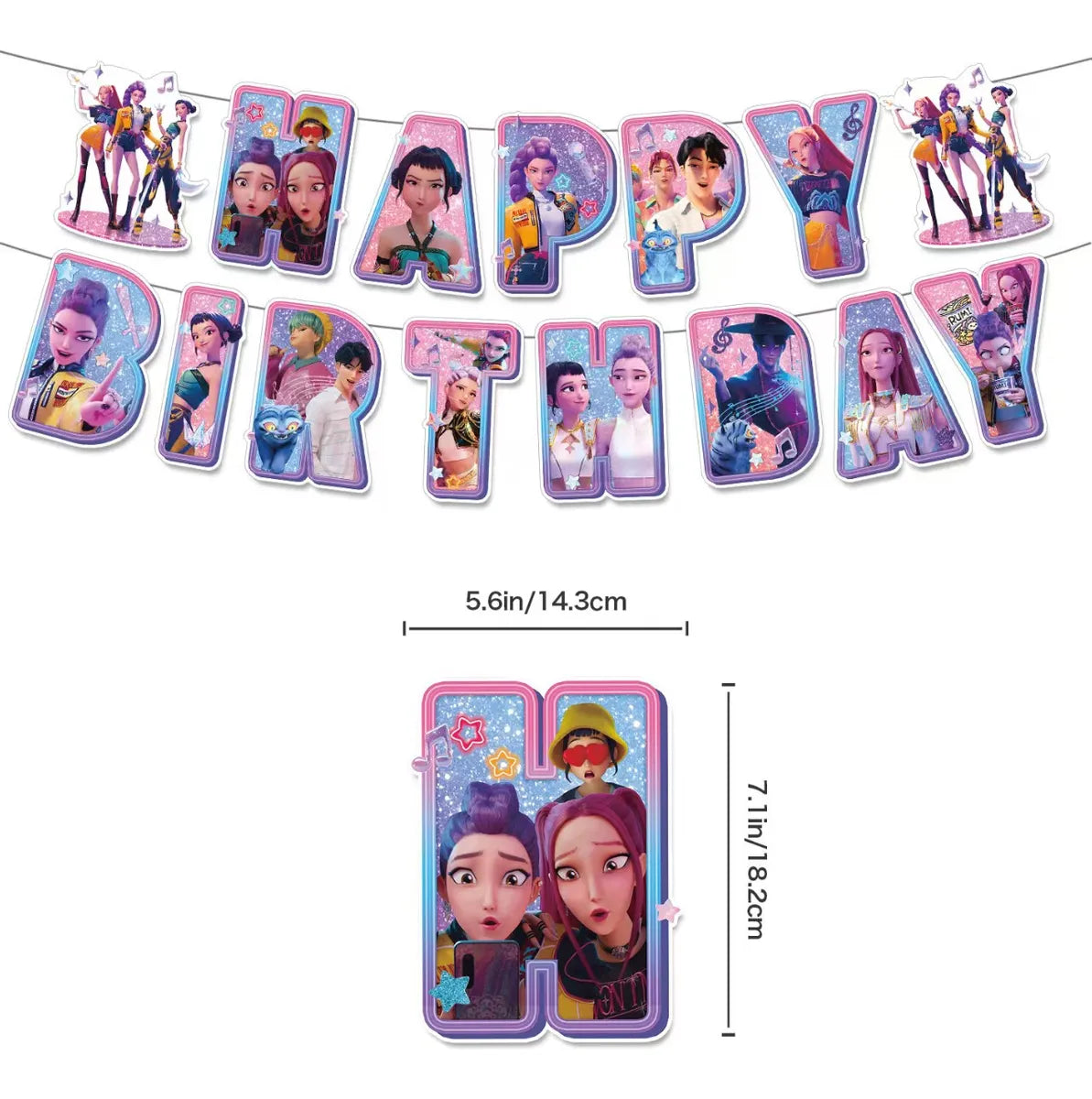 ¡Convierte tu celebración en una misión épica! Este banner de Kpop Demon Hunters mezcla el brillo del K-pop con la fuerza de los cazadores de demonios.