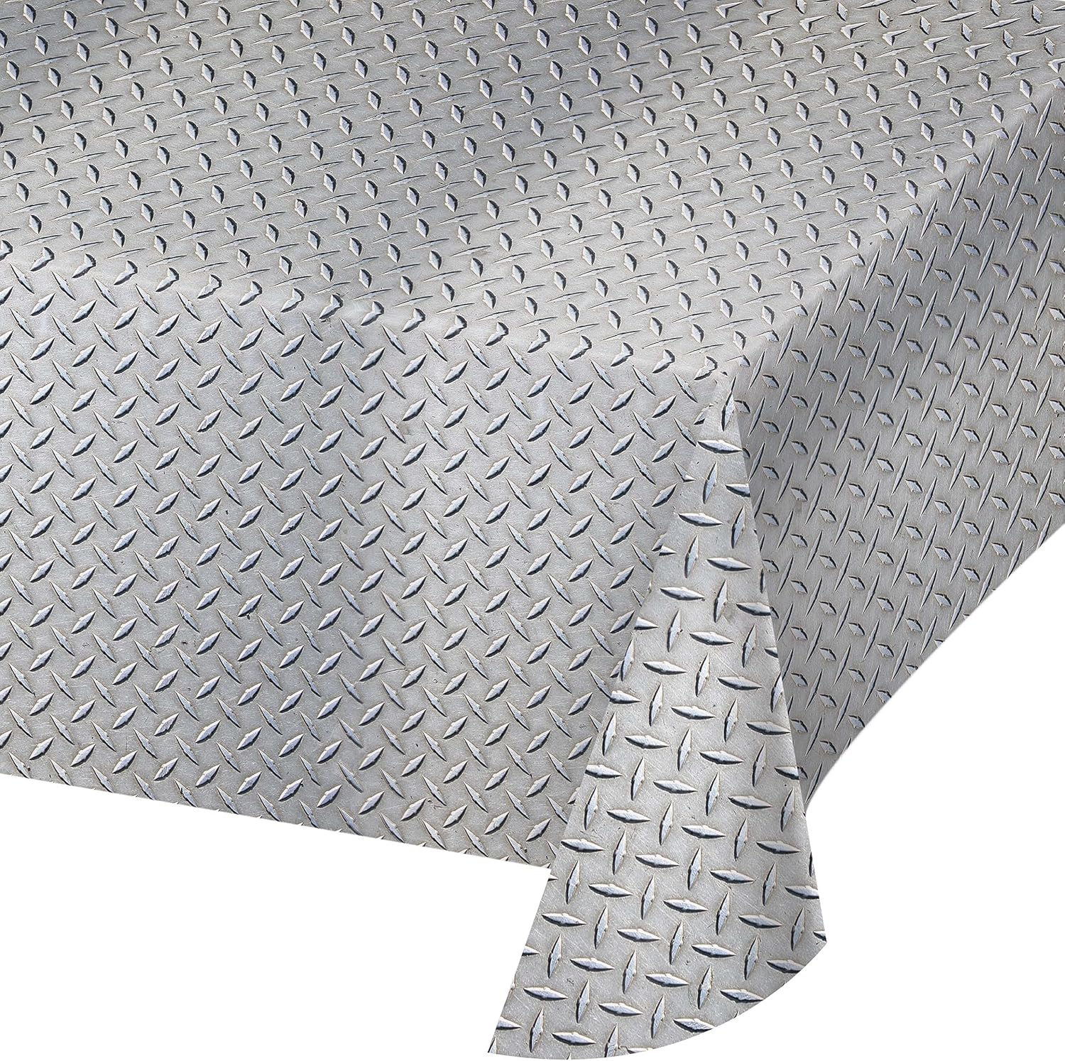 Este mantel con diseño de placas metálicas le da un toque industrial y moderno a cualquier celebración. Ideal para fiestas de construcción, autos o temáticas rudas.