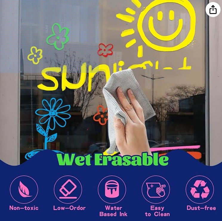 ¡Decora tu auto con mensajes vibrantes! Ideal para escribir en vidrios de carros, perfecto para celebraciones como graduaciones, bodas o cumpleaños. Su tinta se borra fácilmente con un paño húmedo.