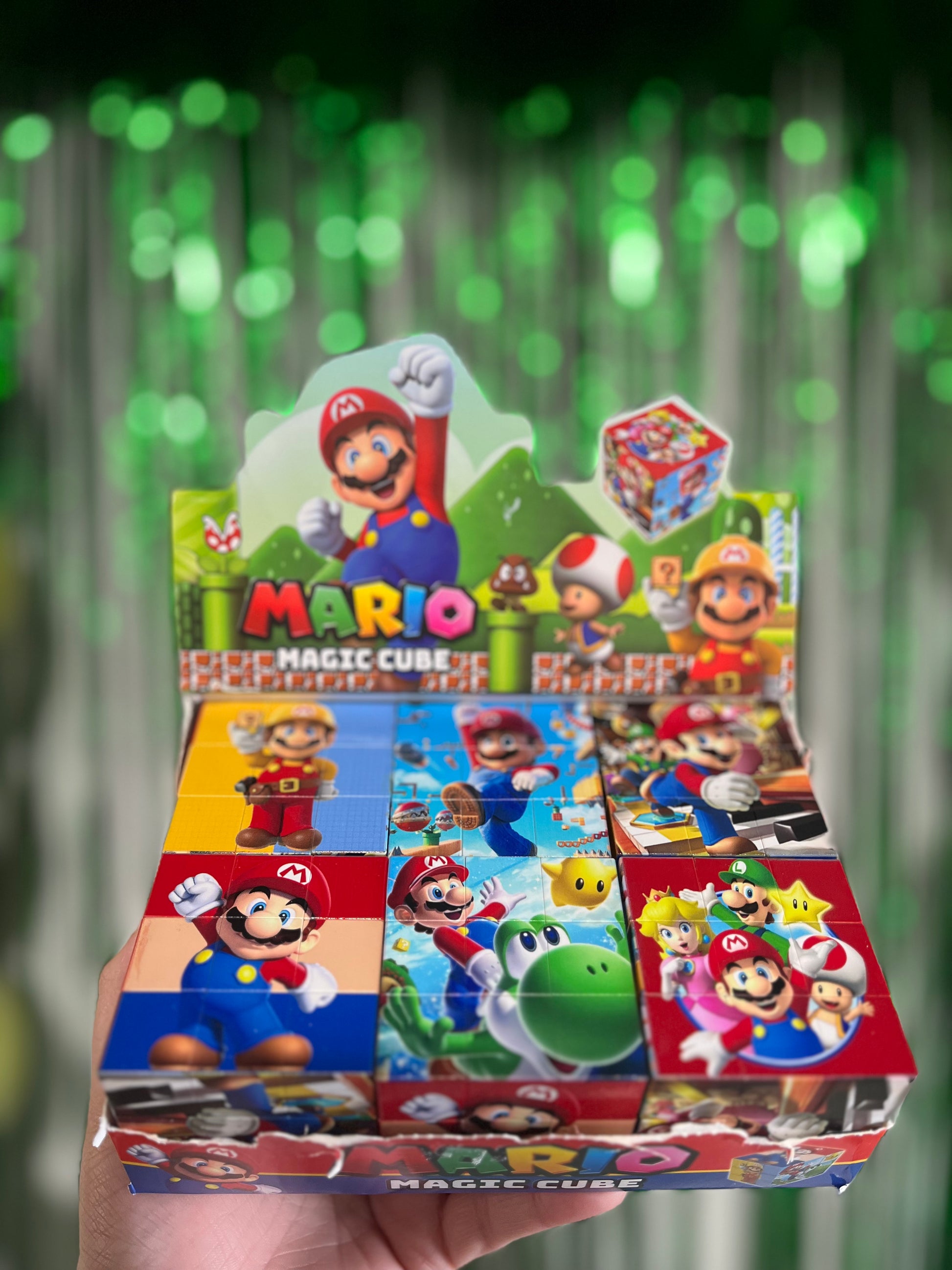 ¡La diversión del Reino Champiñón ahora en la palma de tu mano! El Mario Magic Cube es un rompecabezas giratorio con coloridas imágenes de Mario, Luigi, Yoshi, Peach y más. Ideal para estimular la mente y entretener a fans de todas las edades.