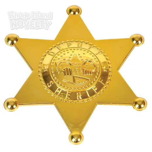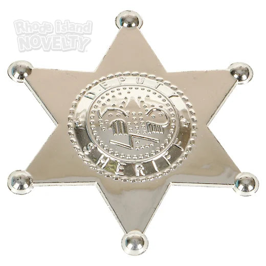 Insignia de sheriff hecha de plástico, ideal para complementar disfraces y juegos de roles.